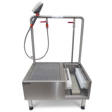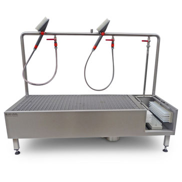 Die Arbeitsschuhe Reiniger Waschanlage bietet bis zu 3 Reinigungsplätze für die spritzfreie und gründliche Reinigung von Arbeitsschuhen. Der von Blue Level entwickelte Arbeitsschuhreiniger